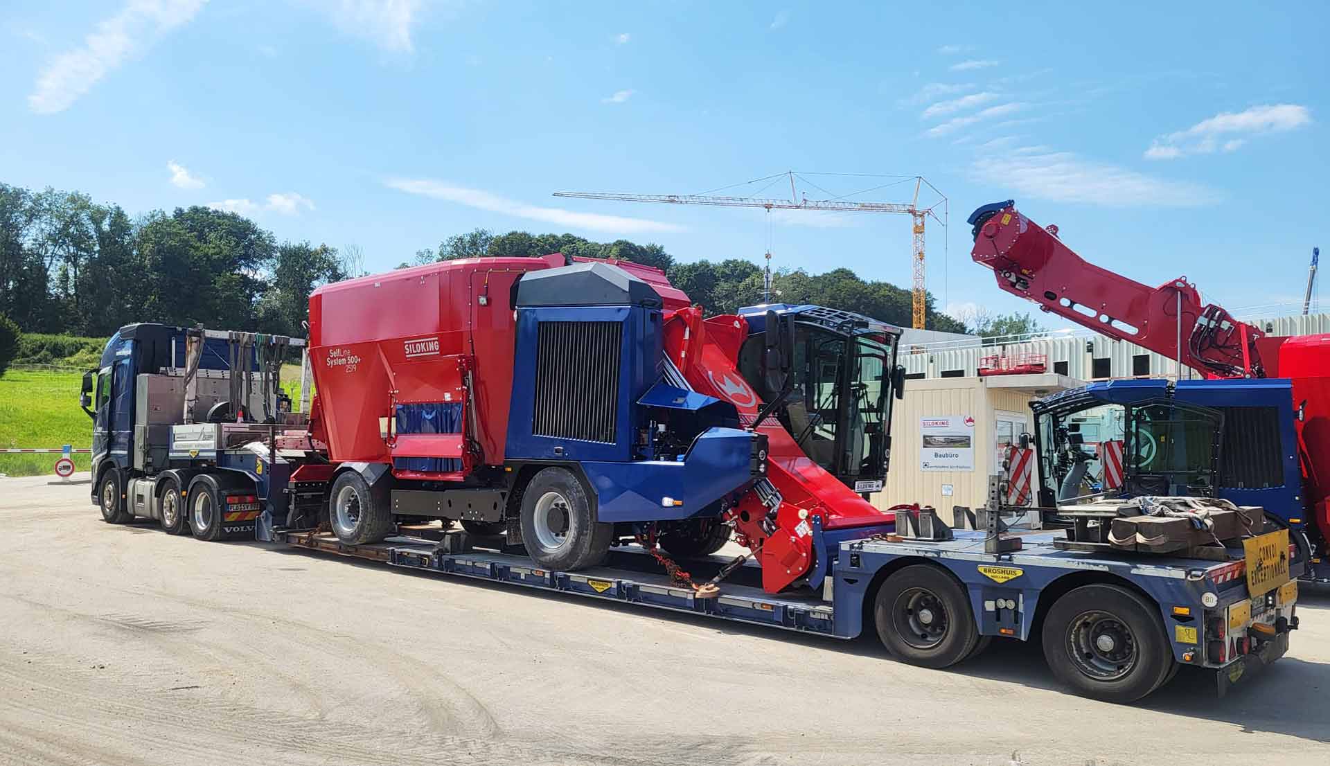 Desweiteren transportiert SLEEPY übergroße, schwere und überbreite Baumaschinen. Da ist dann alles dabei, vom Traktor über Bagger bis Raupe. Von Straßenbau bis Bergbau, von Eisenbahn-Werk bis Heizkraftwerk. Auch hier sind die Anforderungen sehr rigoros, ähneln aber denen im Yachttransport. Solche Transporte können von den Herstellern oder Fahrzeugbauern zu den Abnehmern führen, oder vom Importhafen zu den Kunden. Auch hier gilt: Ladungssicherung hat obersten Vorrang!