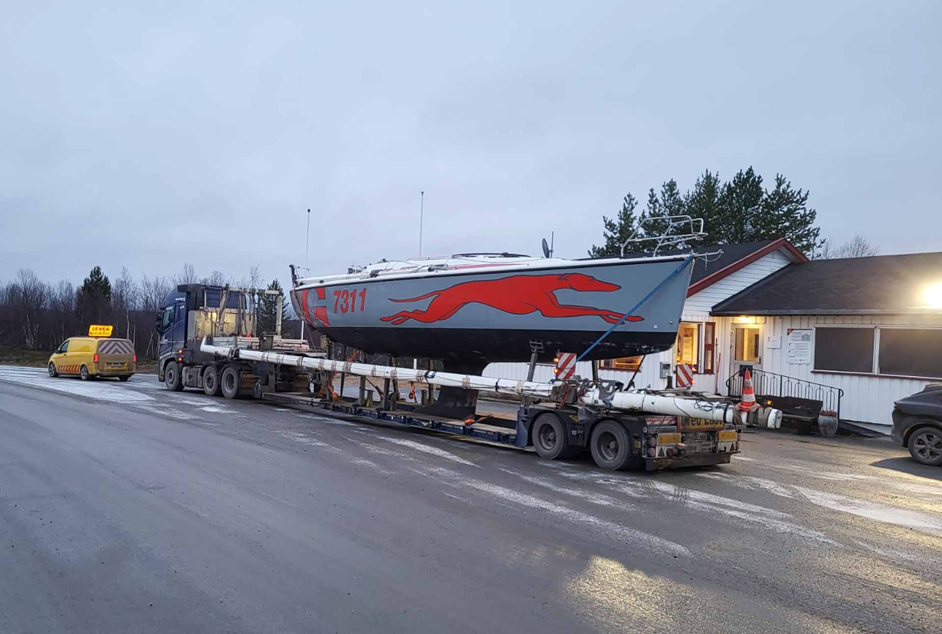 SLEEPY-LKW sind regelmäßig bei den Yachtbau-Unternehmen Schwedens und Finnlands, darunter Nautor´s Swan, Axopar, Targa oder Quarken: Auch wenn die nicht am Polarkreis sitzen, eisig, glatt und vor allem mit Schneemassen gesegnet ist Pietarsaari/Jakobstad in Finnland allemal! Was die Routen in den Süden angeht, so sind SLEEPY-LKW auf den Strecken zwischen den großen und kleinen französischen Werften, wie Beneteau, Jeanneau, Dufour oder auch RM-Yachts „zu Hause“ – Alltag, wenn man so will. Exotischer wird es dann meist eher bei Transporten, die wir für Yachthändler oder private Bootseigner fahren.