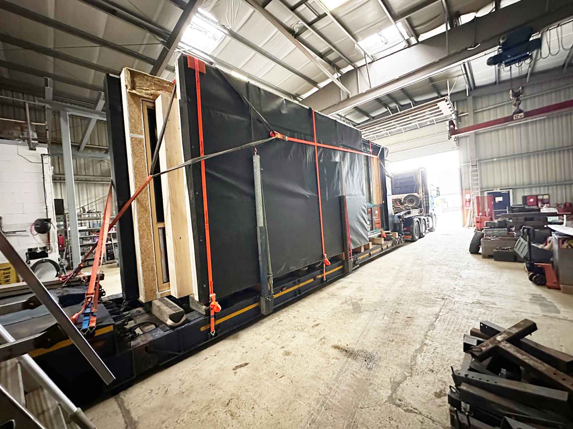 Werden die Häuser zu groß, müssen sie in Teilen gefahren werden. Fertighaus-Hersteller beauftragen uns gern mit Transporten, eben weil wir nicht nur Schwerlast und Ladungssicherung „können“, sondern weil auch diese Teil-Transporte ja zu schwer zu erreichenden Abladeorten gefahren werden müssen. Deshalb haben wir bei SLEEPY auch Fahrer, die wir vorrangig für diese fahrerisch komplizierten „Offroad-Aufträge“ einsetzen: Viel Erfahrung und Fingerspitzengefühl für die wertvolle Fracht inklusive.