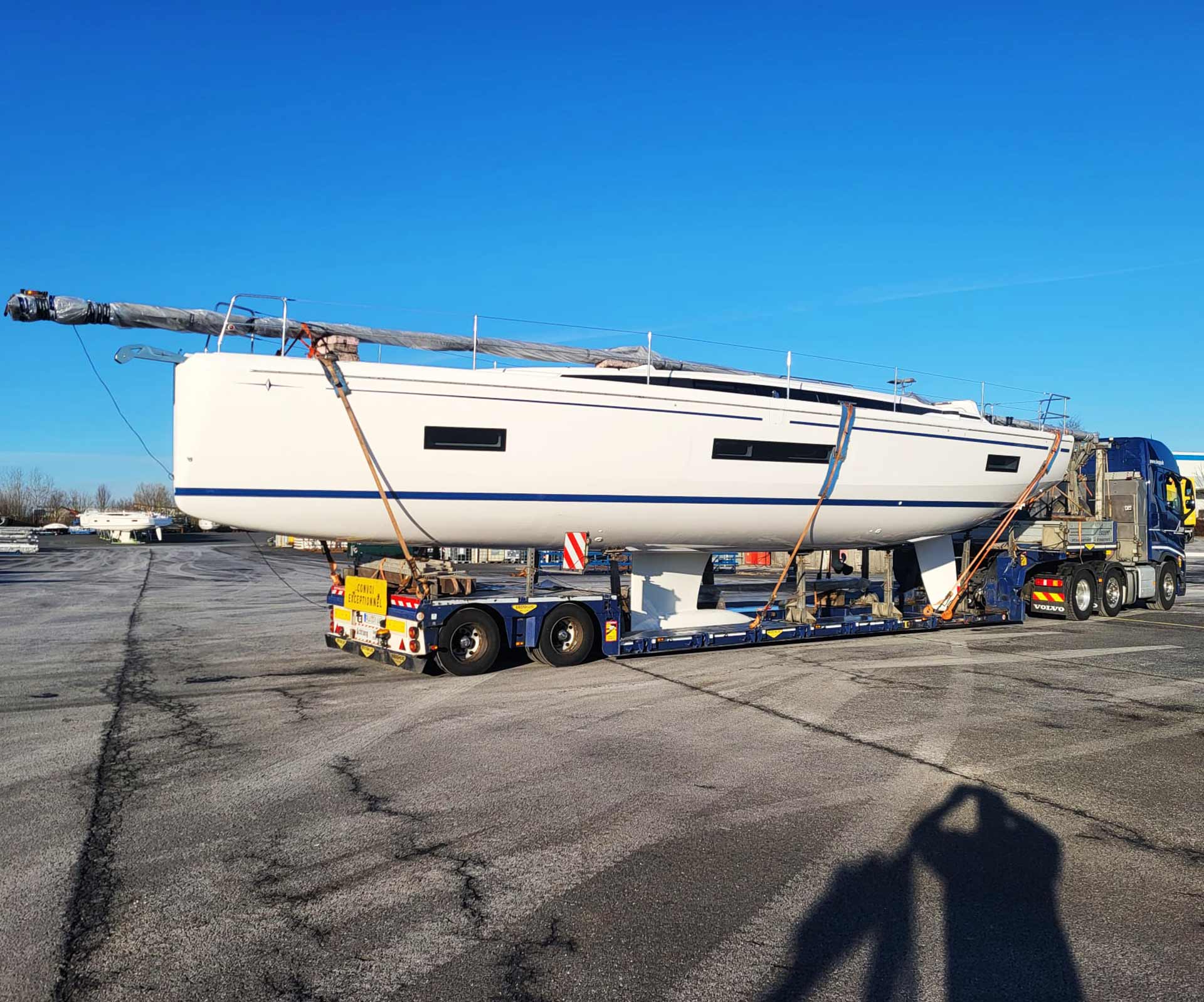 Da kann es dann schonmal via Bulgarien nach Istanbul gehen – und dann auf die asiatische Seite auf einen ganz anderen Kontinent. Oder eben per Fähre vom spanischen Gibraltar aus nach Tanger in Marokko, einem Land, in dem überraschend viel Yachtbau betrieben wird. Wenn eine solche Tour im Hochsommer gefahren wird und Straßenbeläge verdächtig weich werden, dann arbeiten Klimaanlage und Fahrer am Limit. Für unseren „Guinness-Artikel“ gibt einer der Fahrer 42 Grad Celsius im Schatten als seinen Rekord an. Da wird uns schon beim Tippen ganz anders … Dennoch: Die Erfahrungen, die wir mit diesen Transporten sammeln, erweitern unseren Tätigkeitsbereich und machen jeden Folgejob einfacher.