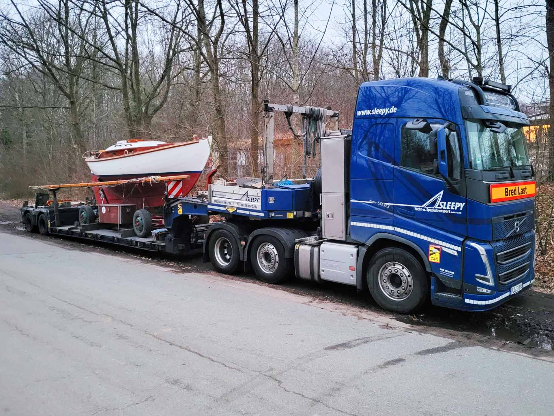 Bei uns in Heikendorf und in ganz Norddeutschland glühen die Kupplungen und schwitzen die Fahrer: Die Winterlager-Zeit im Oktober/November ist absolute Hoch-Zeit für die Kurzstreckentransporte. Fast alle LKW und Trailer sind im Einsatz, damit die Yachten der Kunden aus den Häfen in die trockenen Hallen oder zumindest aufs Trockene kommen. Für uns Anlass, im SLEEPY-Blog einmal etwas auszuschweifen: Die Idee war, eine Art „Guinnes Buch der Rekorde“-Artikel für unsere Schwertransporte zu machen. Was waren die schwersten, längsten, dicksten, teuersten oder einfach verrücktesten Aufträge, die wir je gefahren sind?